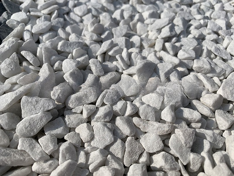 Čistě bílá drť z mramoru. Široce využitelný kámen, který se bude nádherně vyjímat v okrasných zahradách nebo jako dekorační prvek ve Vašem domě.