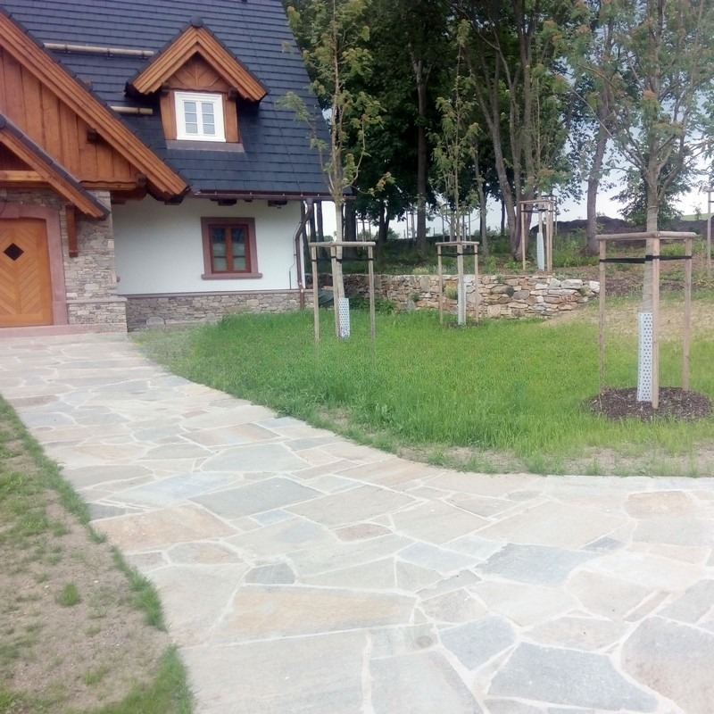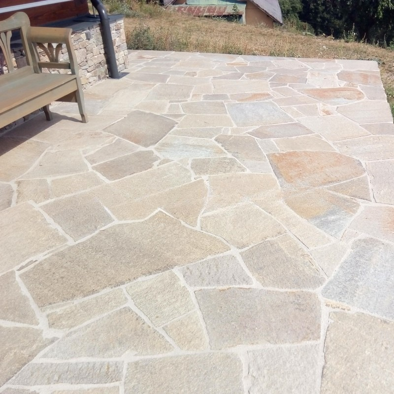 Velkoformátová nepravidelná kamenná dlažba vyniká hlavně svým masivním vzhledem a neobyčejnou odolností. Každý z unikátních kusů zaručuje svou silou kvalitní materiál pro všechny druhy použití. Možnost kombinace s dalšími formáty a spárovacími hmotami zaručuje jedinečnost každé dlážděné plochy. Na rozdíl od umělých materiálů si udrží svůj vzhled stovky let, není náchylná na UV záření a je přirozeně protiskluzová. Správná montáž zaručí kvalitní kamennou dlažbu na věky.