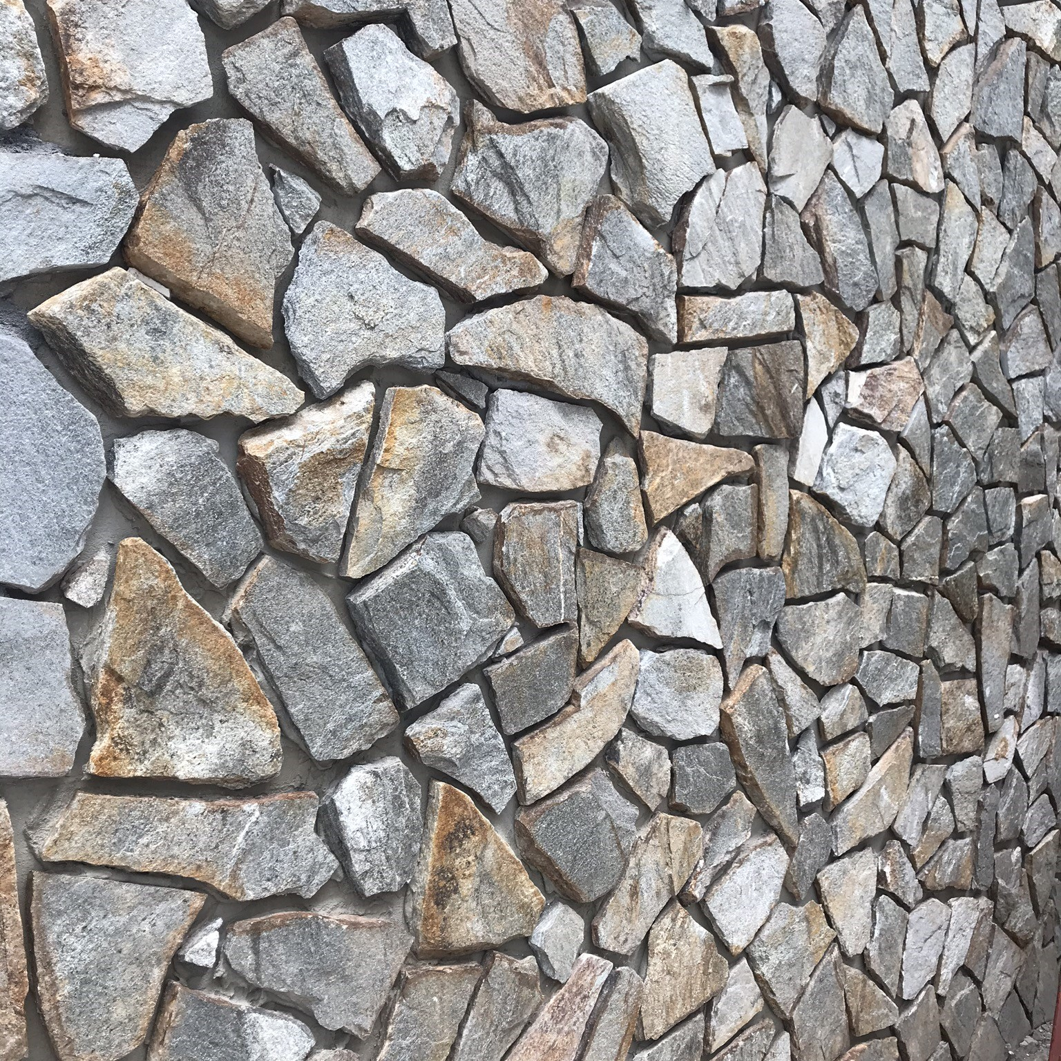 • Nepravidelný tvar jednotlivých kusů: Každý kus kamene má jiný tvar a rozměr. Při pokládce