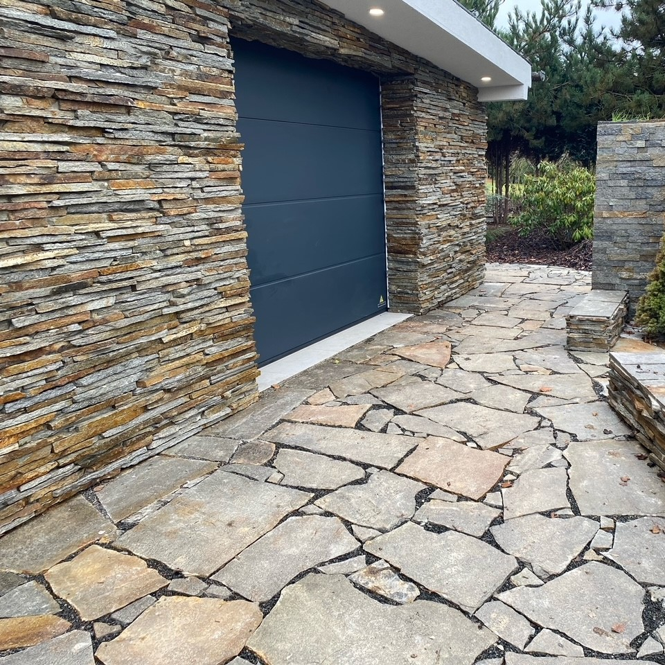 • Nepravidelný tvar jednotlivých kusů: Každý kus kamene má jiný tvar a rozměr. Při pokládce